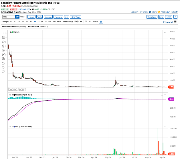 Faraday Future Intelligent Electric (FFIE), with a market cap of around $50 million and shares at $4 apiece, holds promise. Established in 2014, the company aims to revolutionize the automotive industry by crafting next-gen smart electric connected vehicles. Manufacturing in California and with a partnership in South Korea, FFIE is gearing up for a thrilling journey ahead.