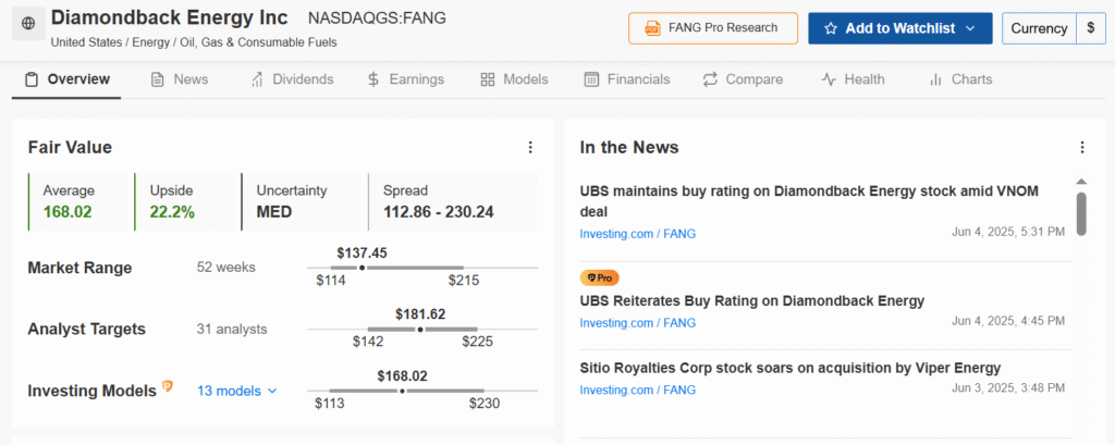 Diamondback Energy is trading at a sharp discount, with the stock down a bruising 16.1% over the past six months and a 27.4% slide in the past year. Yet, beneath the surface pain, analysts see a recovery window: the InvestingPro Fair Value price target sits at $168.02, implying a potential +22.2% upside, with the high end of Wall Street estimates at a striking $225.00.Diamondback Energy-Price Chart