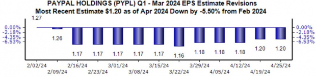 PayPal shares have shadowed the S&P 500 throughout 2024, edging up by 7.2% compared to the broader market’s 6.7% gain. Analysts have upped the ante in their projections for the upcoming release, with the current $1.20 Zacks Consensus EPS estimate signaling a 2.5% year-over-year increase.