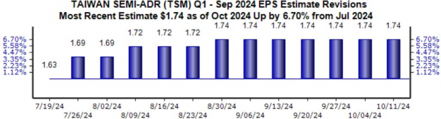 Taiwan Semiconductor, currently sitting at Zacks Rank #2 (Buy), has witnessed a bullish shift in earnings outlook post encouraging quarterly results showcasing robust demand. With shares soaring 80% year-to-date, TSM is outperforming significantly.