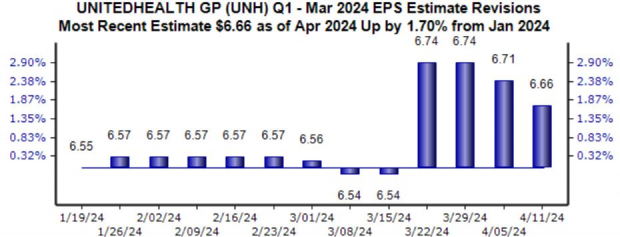 UnitedHealth Group, a healthcare behemoth, has been consistently outperforming expectations, surpassing the Zacks Consensus EPS estimate by an average of 2.7% over the past four quarters. Analysts are optimistic, with a 1.7% increase in the $6.66 Zacks Consensus EPS estimate since mid-January, hinting at a solid 6% year-over-year growth trajectory.