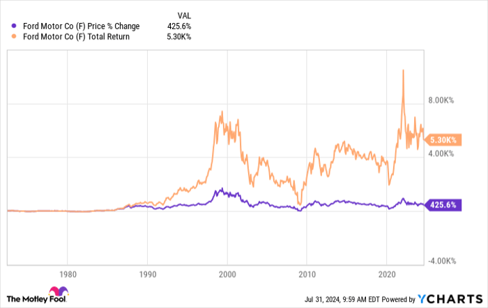In the realm of portfolio returns, dividends wield considerable influence, especially when reinvested. A case in point is Ford, whose total returns, inclusive of dividends, overshadow mere stock price gains.