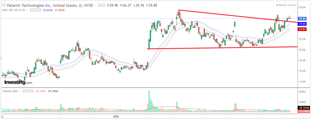 Palantir’s stock, currently trading at $25.85, has surged by 50.5% this year, drawing attention for its leading role in artificial intelligence. The Colorado-based firm excels in AI innovation, with Palantir Foundry and Palantir Gotham leading the charge in advanced data analytics. Through these platforms, Palantir caters to industries like defense, healthcare, and finance, empowering organizations to make informed decisions based on extensive data analysis.