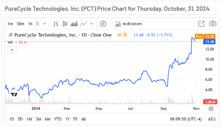 First is Purecycle Technologies (NASDAQ:). The stock is up nearly 250% in 2024, is trading just 10% below its 52-week high, and has a high short interest of 27%. In many respects, I am not surprised by the level of short interest in the company.