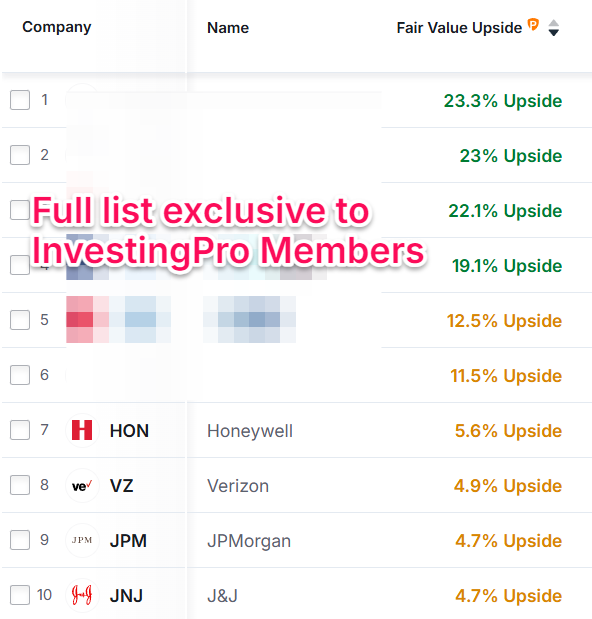 Using this approach, we highlighted the 10 Dow Jones stocks with the highest upside potential based on InvestingPro’s Fair Value estimates.