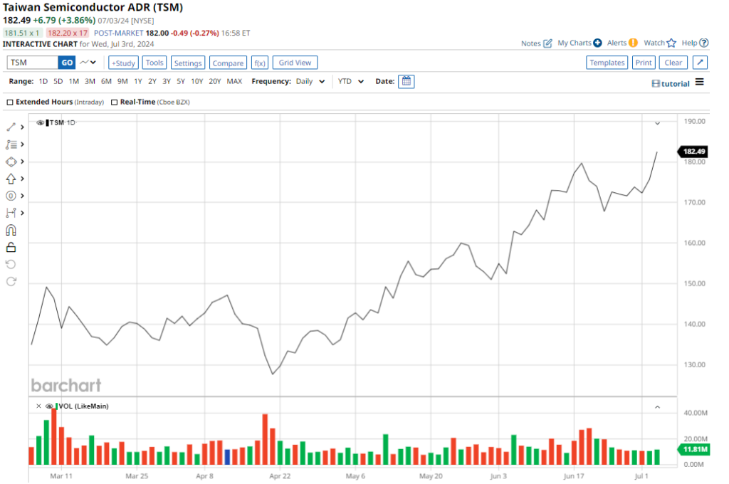 Imagine a colossus in the semiconductor arena, diligently churning out the chips that power our digital world. Enter Taiwan Semiconductor (TSM), a behemoth in chip foundry production and a linchpin in the global chip supply chain. Positioned as the manufacturer behind heavyweights like Nvidia, TSM’s commitment to cutting-edge technology propels it to the forefront of the industry. With a market cap looming at an impressive $946.47 billion, TSM’s stock outshone the competition with a 15% rise in June, boasting a YTD increase of 77%.