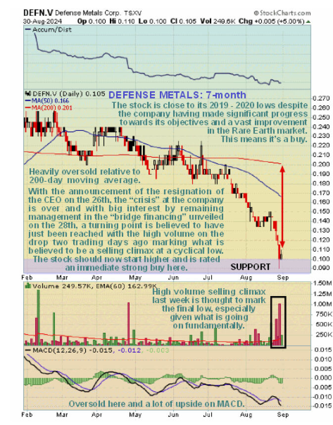 An examination of Defense Metals’ stock charts reveals a narrative of tumult and transition. The recent plunge of the stock to a long-term support level beckons a tale as old as time — a sharp decline often paves the way for a meteoric rise. Such historical patterns suggest the potential for rapid gains in the face of adversity.