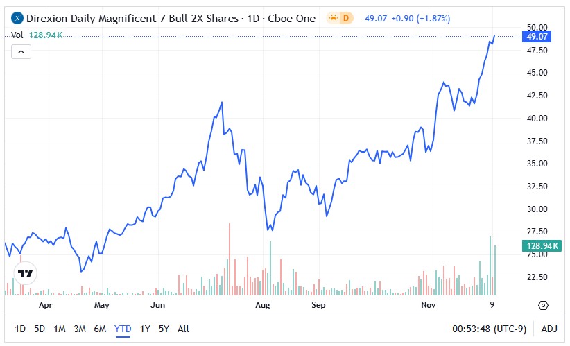 The Direxion ETFs: Nevertheless, JPMorgan analysts warned that not everything about the Magnificent 7 is without concern. Notably, the experts stated that capital misallocation and lofty growth targets could invite investor skepticism by late next year. If so, the ability to extract returns from both positive and negative narratives forms the backbone of Direxion’s innovation-focused exchange-traded funds.