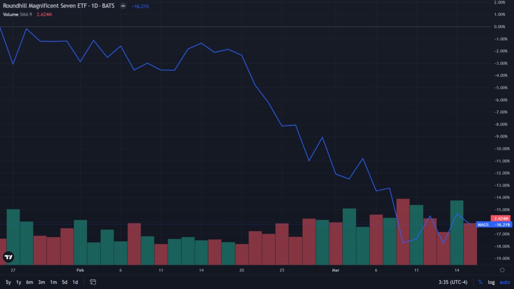 Since DeepSeek was introduced on Jan. 24, MAGS has been down by 16.21% according to Benzinga Pro.