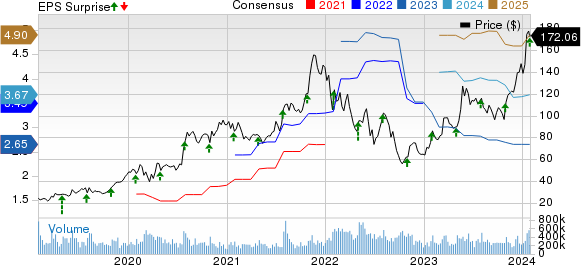 AMD experienced a 10.2% increase in year-over-year revenues, reaching $6.17 billion, slightly surpassing the Zacks Consensus Estimate. The company’s data center revenues surged 38% year over year, reaching $2.28 billion, bolstered by the strong adoption of fourth-generation AMD EPYC CPUs and AMD Instinct GPUs.