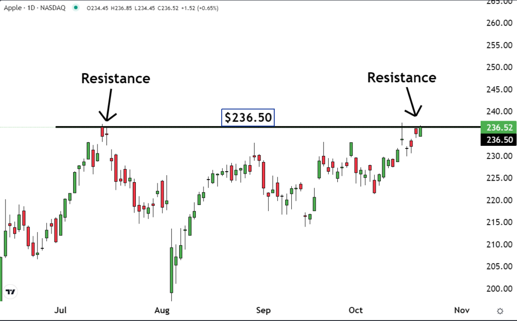 Consequently, as Apple retraced to the neighborhood of $236.50, a surge of sell orders inundated the market. This deluge of sell mandates instigated a resurgence of resistance at a familiar price point.