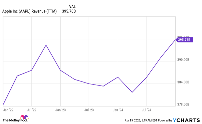 With Apple just now reaching its COVID-era sales peak, it will have to battle tariffs to return to this threshold. We don’t know much about how the company believes tariffs will affect its sales, but we’ll find out more on May 1 when it reports fiscal second-quarter sales (for the quarter ending in March 2025).
