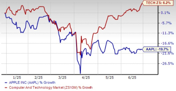 Apple shares have dropped 19.7% year to date (YTD), underperforming the broader Zacks Computer & Technology sector’s return of 6.2%.