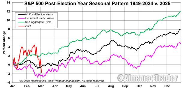 Over the past few years, historical seasonality patterns have been one of the most valuable and accurate means of predicting the market’s next move. Even before the tariffs were announced, the post-election seasonality pattern suggested that Q1 equity weakness was likely. The good news is that this weakness typically subsides, and markets bottom more often in the back half of March than any other time of year.