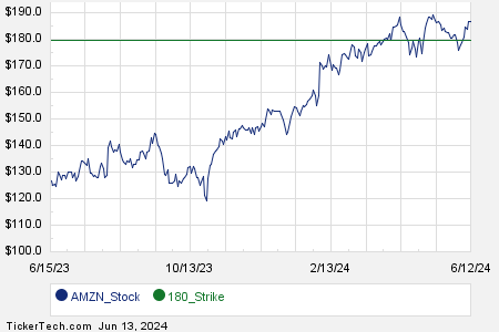 Visualizing the trailing twelve-month trading history for Amazon.com Inc, the $180.00 strike point is highlighted, offering investors a contextual backdrop for their options strategies.