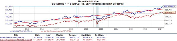 Berkshire Hathaway’s stock currently lands a Zacks Rank #3 (Hold). After such a sharp YTD rally in BRK.B, there could be better buying opportunities ahead. However, long-term investors may still be rewarded which Warren Buffett has emphasized when it comes to owning.