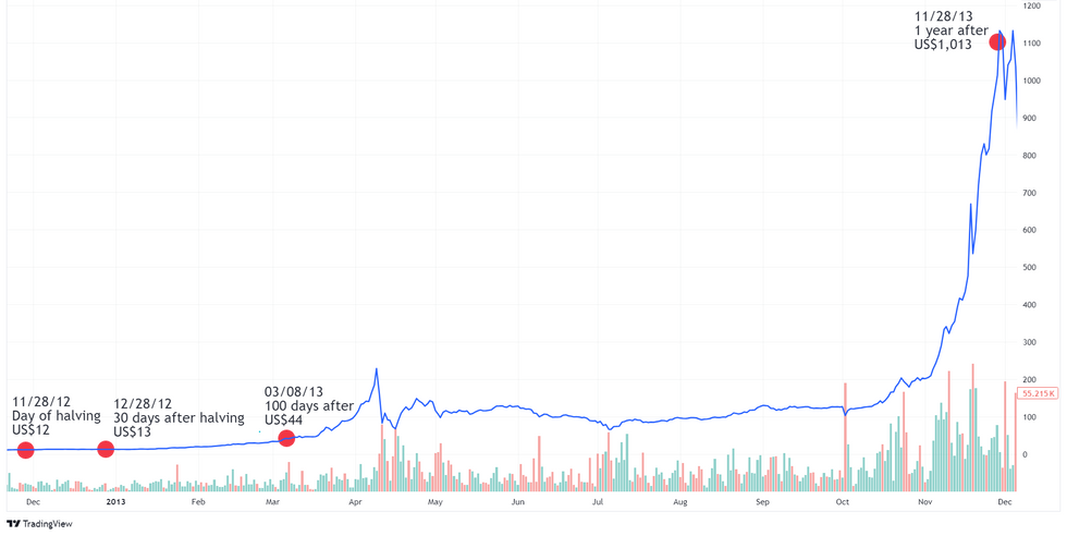Bitcoin USD price chart 11/21/2012 to 12/05/2013