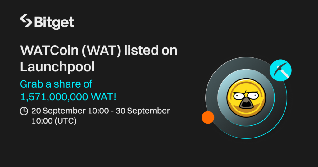 VICTORIA, Seychelles, Sept. 22, 2024 (GLOBE NEWSWIRE) — Bitget, the world’s leading cryptocurrency exchange and Web3 company, is set to list WATCoin (WAT), providing eligible users the opportunity to lock BTC, ETH, and MOCA in exchange for a share of 1,571,000,000 WAT. This promotional event will commence on September 20, 2024, at 10:00 (UTC) and run for ten days, allowing participants to maximize their holdings during this period.