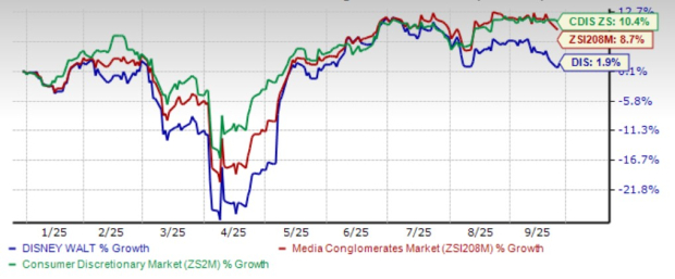 Disney shares have gained 1.9% in the year-to-date period, underperforming both the Zacks Consumer Discretionary sector’s rise of 10.4% and the Zacks Media Conglomerates industry’s growth of 8.7%.
