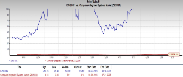 Let’s not forget that IonQ is an overpriced stock and could see its price fall when the market corrects itself. IonQ’s forward price-to-sales (P/S) ratio stands at 126.59 compared to 4.14 for the Computer-Integrated System industry.