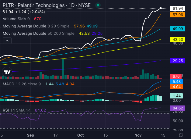 The latest rally, though impressive, has led PLTR stock into overbought territory, with an RSI of 84.62 signaling potential for a pullback.