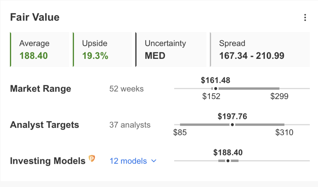 Despite prevalent pessimism, InvestingPro’s crystal ball showed a $188.4 price target back in April, hinting at a nearly 20% upside in the short run.