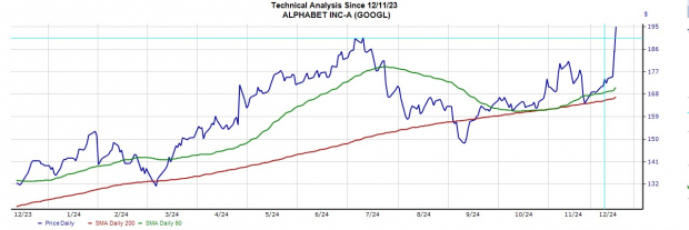 Similarly, Willow has lit a spark in Alphabet’s stock which had recently broke above its 50-day and 200-day Simple Moving Averages (SMAs) that were in the $160 a share range. Setting up a bullish pattern of its own, Alphabet’s stock has soared +16% in December and is sitting on +40% gains for the year. Year to date, this has trailed Amazon’s +50% but has impressively topped the broader indexes.