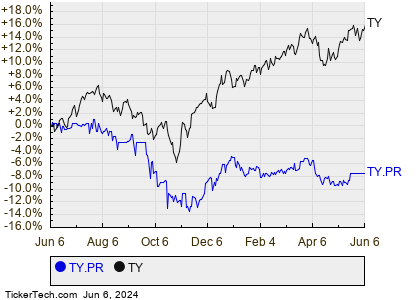 To provide a performance snapshot, observe the one-year journey of TY.PR shares against TY in the comparison chart below.