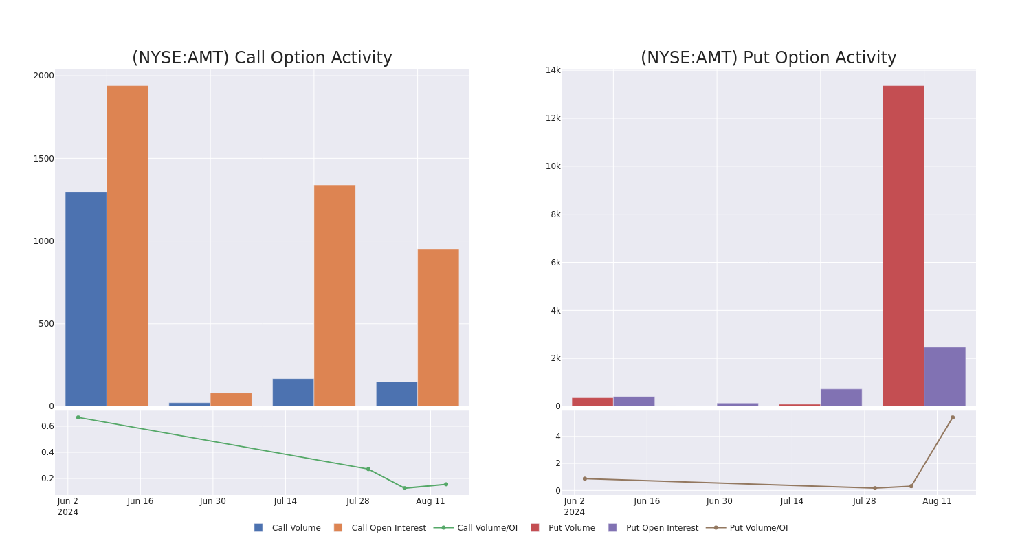 Benzinga’s options scanner has identified over a dozen option transactions on American Tower (NYSE: AMT), totaling $799,652. Concurrently, algorithmic analysis ...