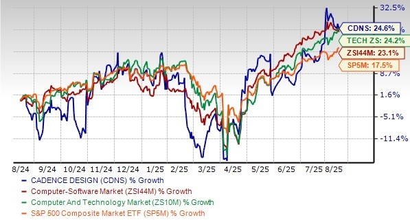 Cadence Design Systems CDNS stock has risen 24.6% over the past year, higher than the gains registered by the Computer-Software industry (up 23.1%), the broader Computer and Technology sector (up 24.2%) and the S&P 500 composite (up 17.5%).
