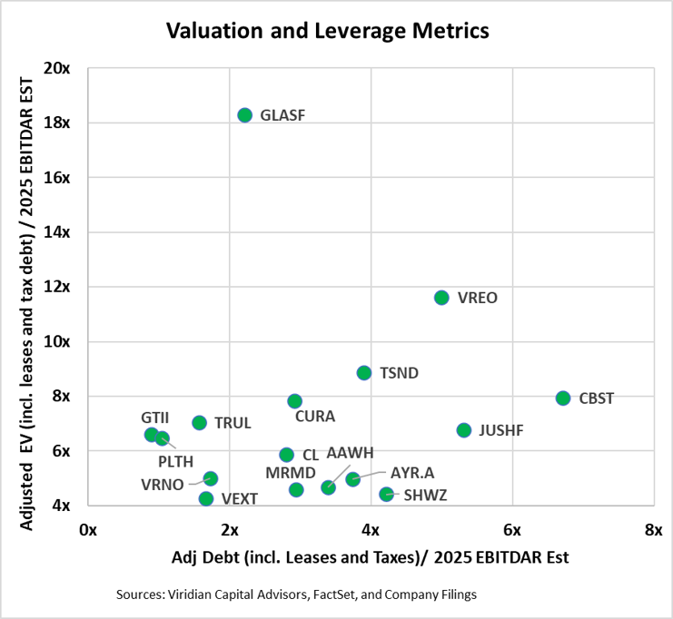 Viridian’s approach doesn’t stop at the conventional measures. They delve deeper into the financial landscape of cannabis companies, recognizing that leases play a substantial role in a company’s capital structure. By treating leases as debt and factoring in accrued tax liabilities exceeding a quarter of tax expense, Viridian crafts a more comprehensive picture of a company’s financial obligations.