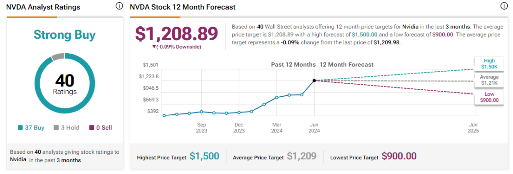 Despite the intricate dance of sanctions and maneuvers, analysts continue to exude confidence in NVDA stock, backing it with a Strong Buy consensus rating supported by 27 Buy recommendations against three Holds. So far this year, NVDA has soared by over 100%, with the average price target of $1,208.89 foreseeing a marginal 0.09% downside potential from its current value.