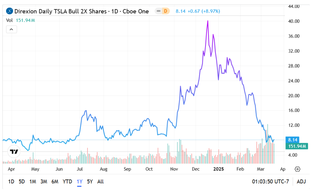The TSLL ETF: Although one of the best performers last year, the TSLL ETF is down more than 70% this year, a sobering statistic.