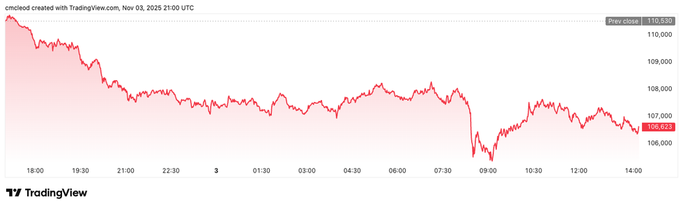 Bitcoin price performance, November 3, 2025.