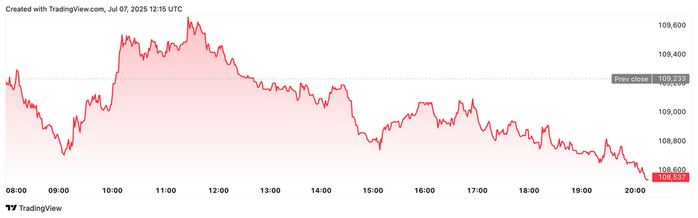 Bitcoin (BTC) is priced at US$108,960, trading flat in the last 24 hours. The day’s range for the cryptocurrency brought a low of US$108,077 and a high of US$109,574.