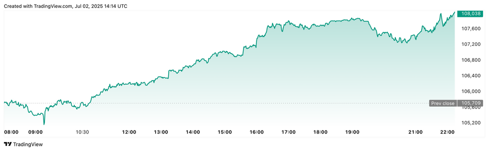 Bitcoin (BTC) is priced at US$107,699, up 1.6 percent in the last 24 hours. The day’s range for the cryptocurrency brought a low of US$105,402 and a high of US$107,968 at the opening bell.