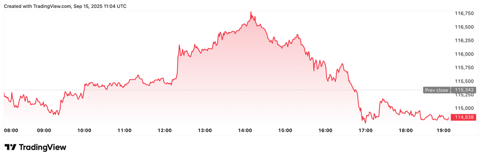 Bitcoin (BTC) was priced at US$114,794, a 1.2 percent decrease in 24 hours. Its highest valuation of the day was US$116,689, and its lowest was US$114,793.