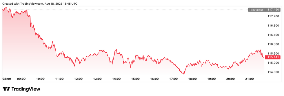 Bitcoin price performance, August 18, 2025.