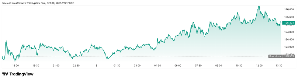 Bitcoin (BTC) was priced at US$125,434, up by 2.3 percent in 24 hours. Its lowest valuation of the day was US$124,565, and its highest was US$126,080. Bitcoin achieved its strongest weekly close at US$123,400 on October 3, affirming entry into a new price discovery phase, before hitting new highs on Monday.