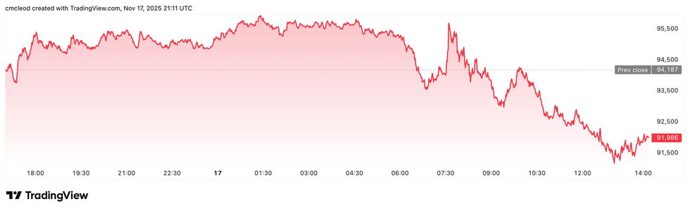 Bitcoin price performance, November 17, 2025.
