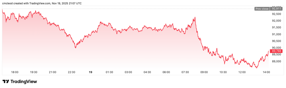 Bitcoin (BTC) was priced at US$89,503.92, down by 3.5 percent over 24 hours. Its lowest price of the day was US$88,540.26 and its highest was US$92,074.61.