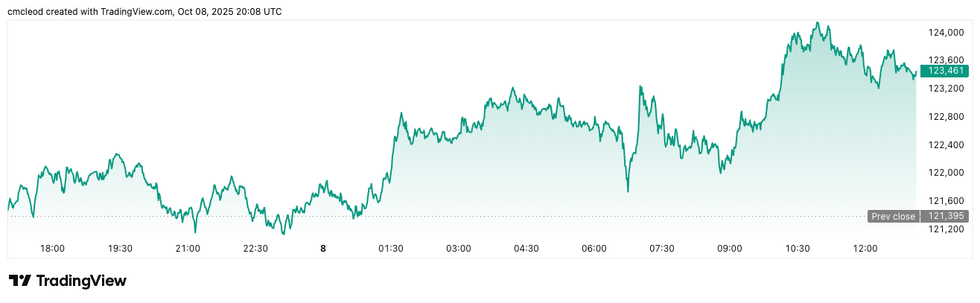 Bitcoin price performance, October 8, 2025.