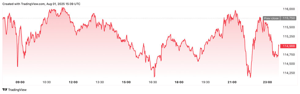 Bitcoin price performance, August 1, 2025.