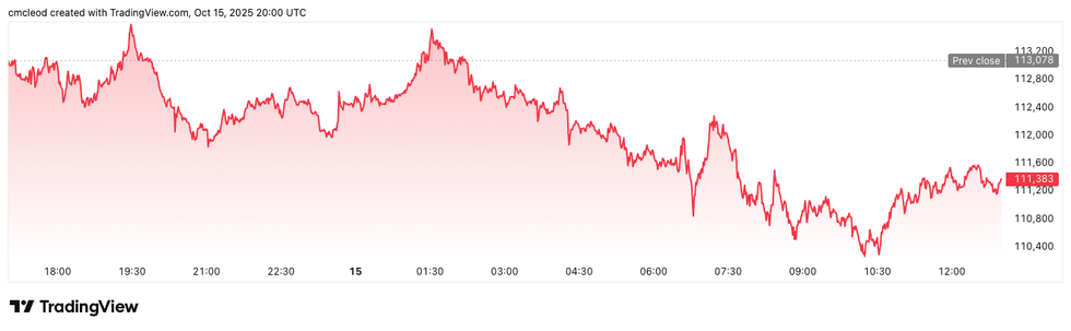 Bitcoin (BTC) was priced at US$112,274, a 1.2 percent decrease in 24 hours. Its lowest valuation of the day was US$110,392, and its highest was US$112,241.