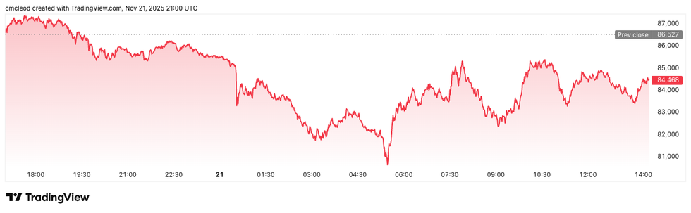 Bitcoin price performance, November 21, 2025.