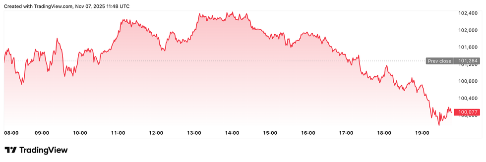 Bitcoin price performance, November 7, 2025.