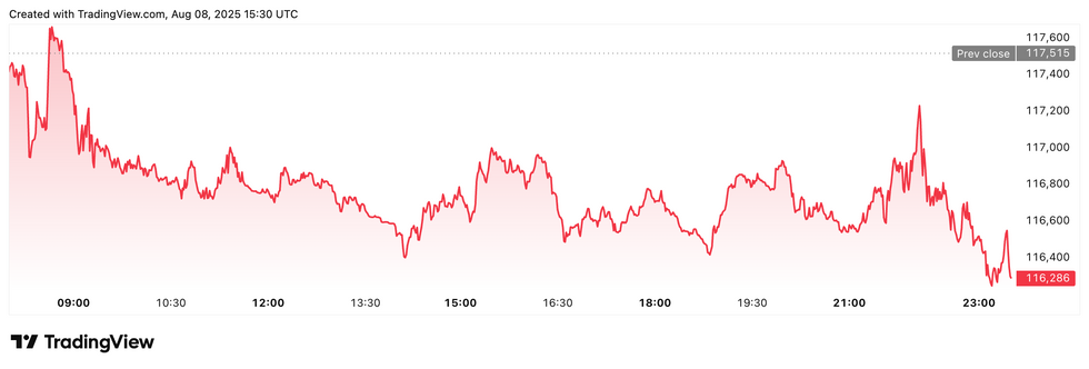 Bitcoin (BTC) was priced at US$116,381, trading flat over the last 24 hours. Its highest valuation on Friday was US$116,112, while its lowest valuation was US$117,596.