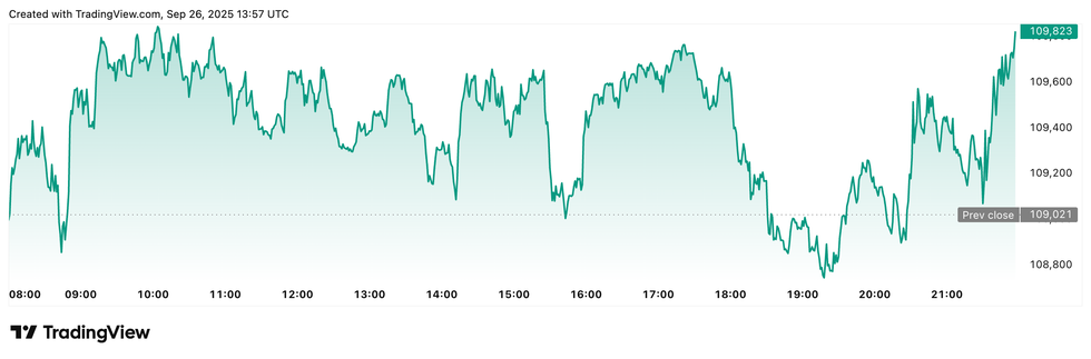 Bitcoin price performance, September 26, 2025.