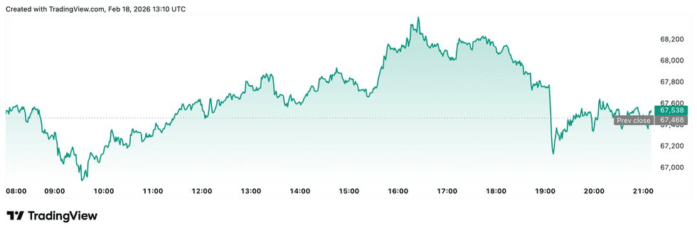 Bitcoin price performance, February 18, 2026.