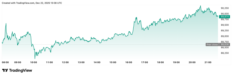 Bitcoin price performance, December 22, 2025.